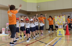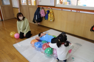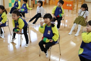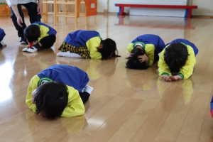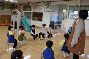 遊具でたっぷり遊んだ後は、ホールに集まってみんなで一緒に