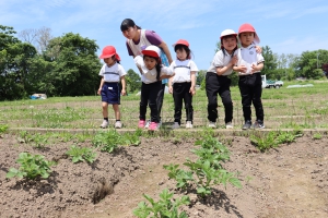 お散歩の後は、じゃがいも畑に経過観察に行きました。