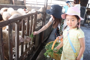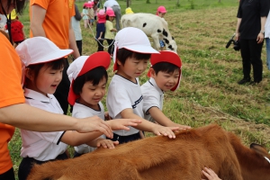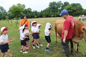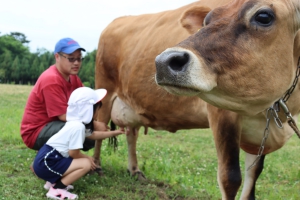 ABITANIAジャージーファームにて、餌やりや乳しぼりを体験し