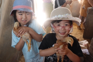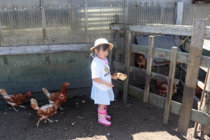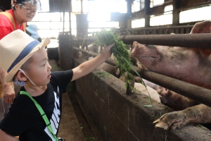 鯵ヶ沢にある長谷川自然牧場におじゃまして、豚とにわとりの餌やり、ふれあいを