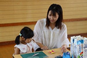 折紙で尊富士を折って「これ渡すんだー」と張り切る子もいて